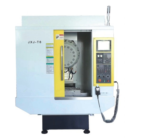 本机床机身采用床台式结构,高强度铸铁,保证机床高刚性。三轴采用线性导轨,配广州数控铣床专用数控系统,总线伺服单元、绝对式编码器的伺服电机及斗签式刀库精度高、性能可靠。三轴联动,可批量高效自动加工平面、斜面、沟槽、钻孔、攻丝及异形面的零件。